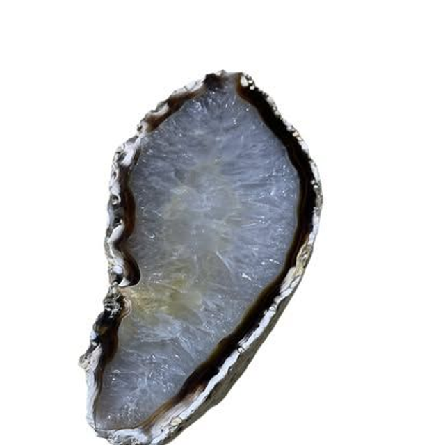 L’agate est reconnue pour ses vertus d’équilibre et d’apaisement. Elle diffuse une énergie douce et stabilisante, idéale pour créer une atmosphère sereine dans un intérieur. Placée sur un meuble, une étagère ou un bureau, cette tranche d’agate apporte une touche minérale élégante et naturelle.